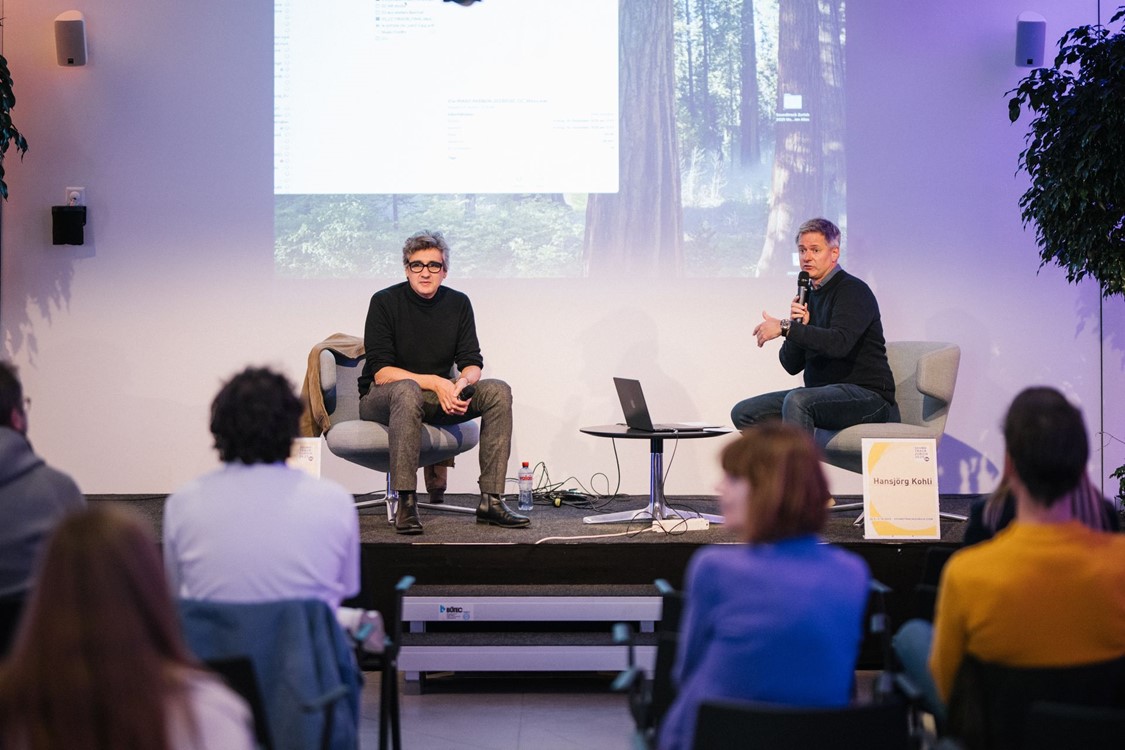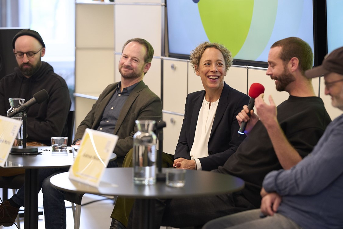 Benjamin Graf, Michael Egli, Kerstin Bäcker, Noah Martin and Andreas Weidinger · How To Train The AI Dragon panel ©Andrea Camen / SoundTrack_Zurich 06